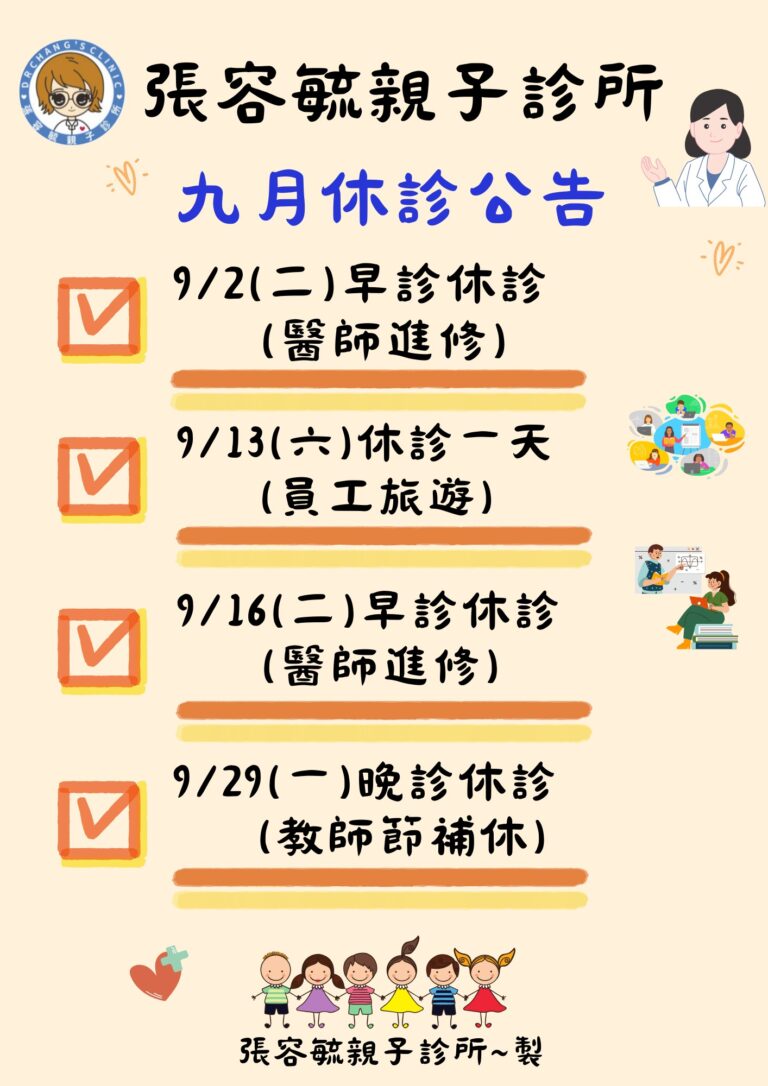 九月的休診公告